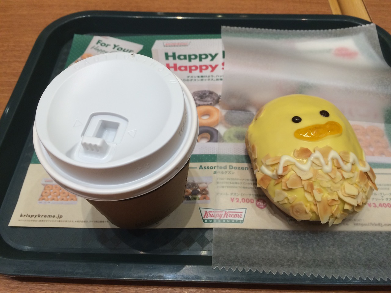 ららぽーとクリニックでの診察の帰り、こちらで休憩。期間限定商品のキャラメルイースターをコ−ヒーでいただきました。キャラメルイースターはかわいい顔が書いてあります。中にはキャラメル味のクリームが入っていて、とても甘いです。
