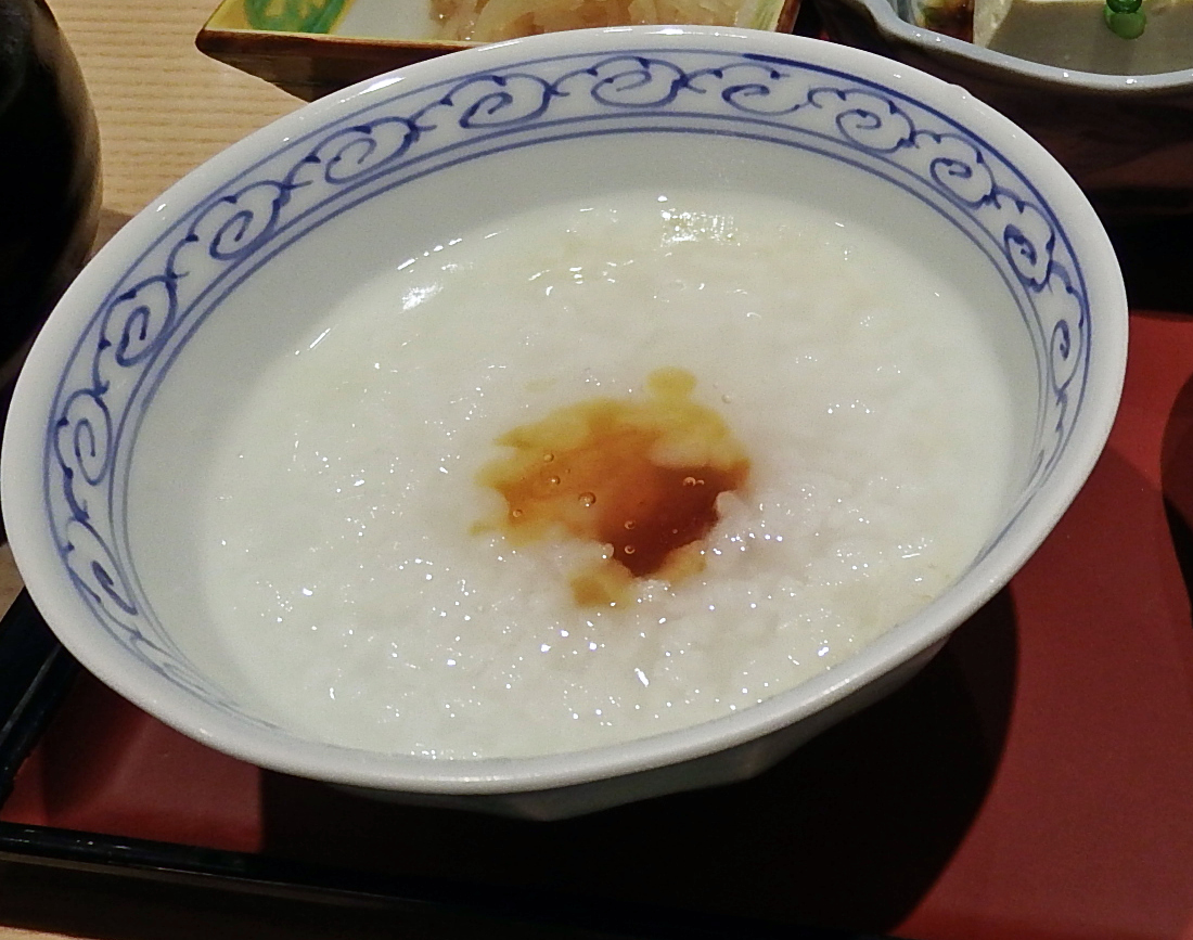 日航福岡に朝食付プランで宿泊すると、和洋食ビュッフェか、ここ弁慶での和食を選べます。前者が6時半スタートに対し、弁慶は7時スタートです。どちらも2600円となっています。和食は、ご飯かお粥を選べます。私は、お腹に優しいと思われるお粥を選びました。お粥以外の料理は、お盆にのせられて一度の届けられます。後は、ゆっくりマイペースでいただきます。美味しいものを少しずつ食べたい方のおすすめです。