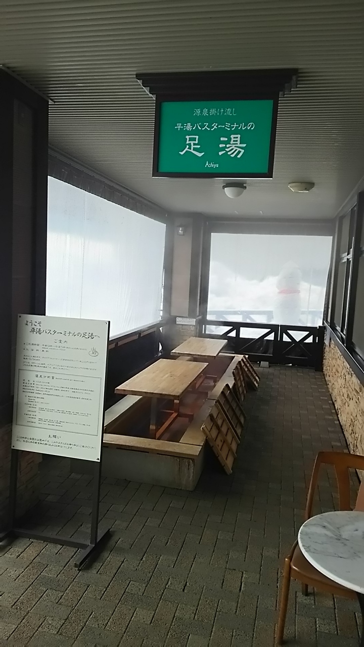 平湯温泉を発着点とするバスターミナル。新宿や松本、北陸の各都市を結びます。待っている間に足湯で温まることができます。電車がないため、マイカーなしだとバスという交通手段になります。