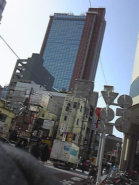 三軒茶屋の駅前に建つ、高いビルのりかえじです。