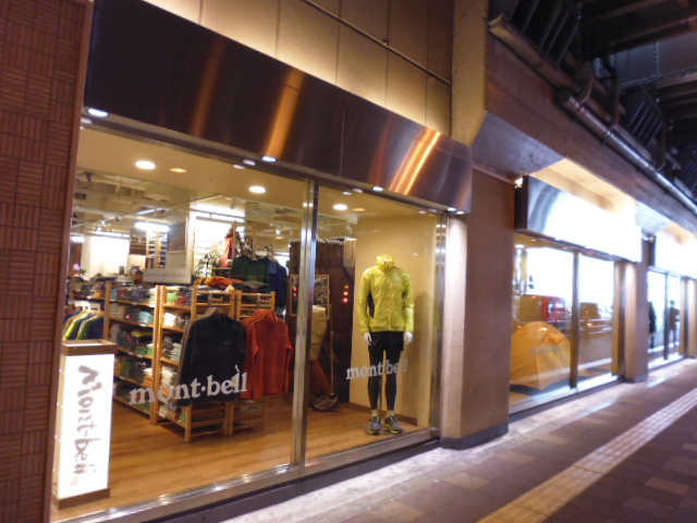 大阪本社の山用品メーカーといえばここモンベルです。大阪駅の桜橋口近くにあるアルビの1階角に鎮座しています。