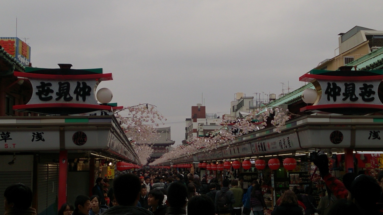 浅草駅から雷門をくぐると参道の両側に色々なお店があって、歩くこと自体が楽しいところです。グッズ系のお土産は完全に観光客向けですが、食べ物は浅草らしく和菓子系を中心に食べ歩きができる形で提供されていて、楽しさを倍増させてくれました。買い物をしなくても楽しめるストリートです。