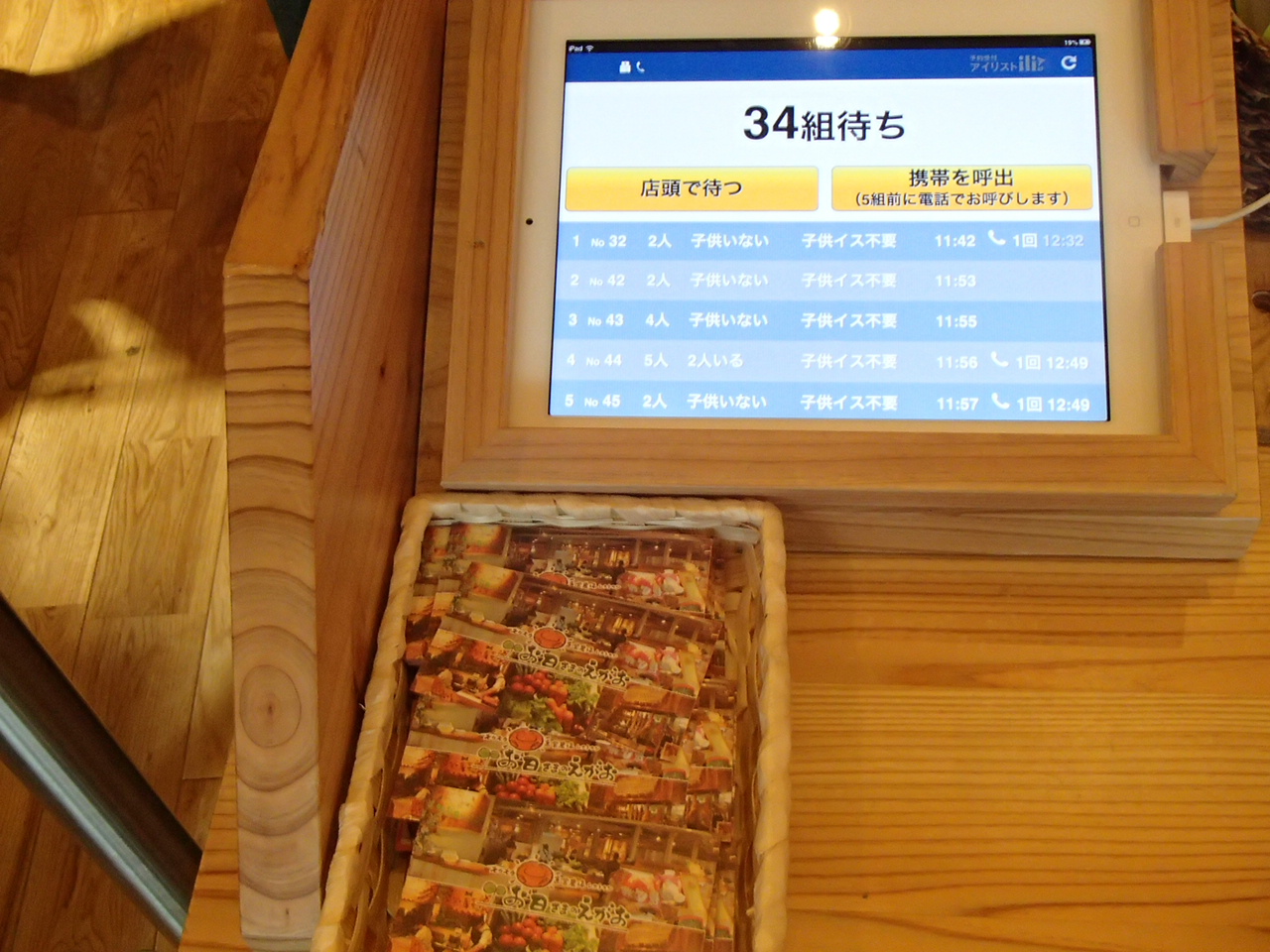 いつも多くの人で賑わっているお店で、受付待ちシステムが有りますので、それで待ち組数を把握する事ができます。
