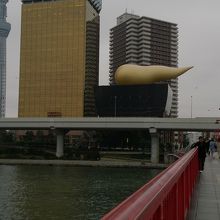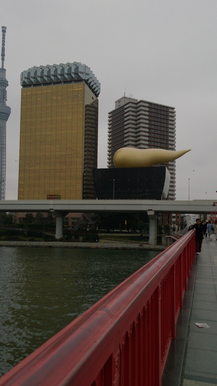 隅田川の墨田区側の吾妻橋のたもにあるビルの上にあるオブジェやが特徴のビルで、このビルがオープンしてから、かれこれ20年以上経過していますが、この斬新なデザインは全く古さを感じず、本物のデザインは輝きを失わないという代表作だと思います。最寄駅は浅草線の本所吾妻橋駅より浅草駅の方が近いですが、風が強い雨降りの日は吾妻橋の上が風雨を遮るものがないのでびしょ濡れになる可能性があるので注意が必要です。