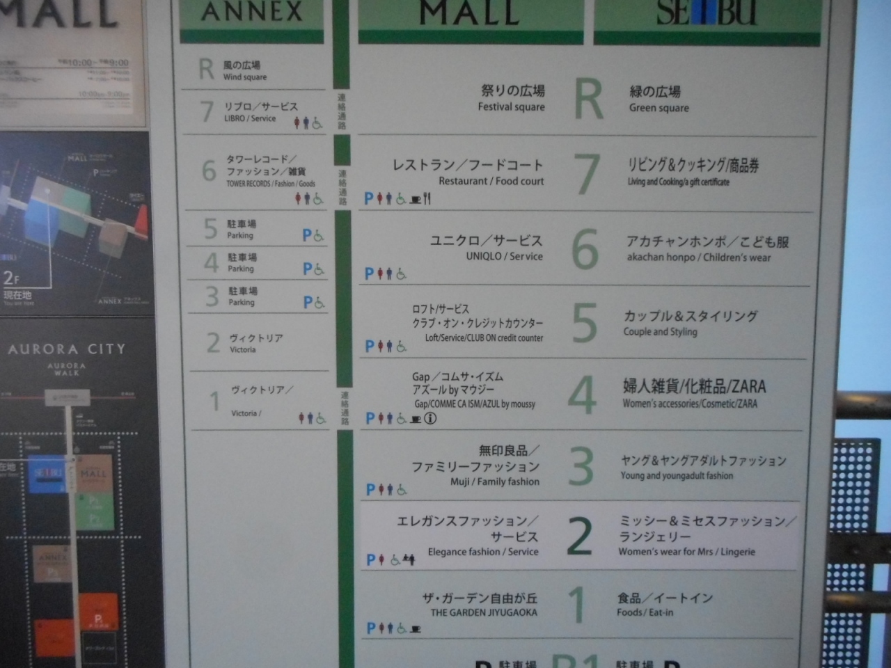 デッキから見て右側が西武、左側がオーロラモールと呼ばれるようで、オーロラモールには専門店が数多く入っています。