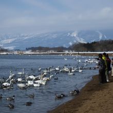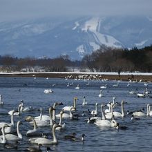 冬には沢山の白鳥が訪れ、パンの餌やりを楽しむ家族連れなどで賑わっています。晴れた日には、磐梯山を背景に素敵な写真も撮れるかと思います。