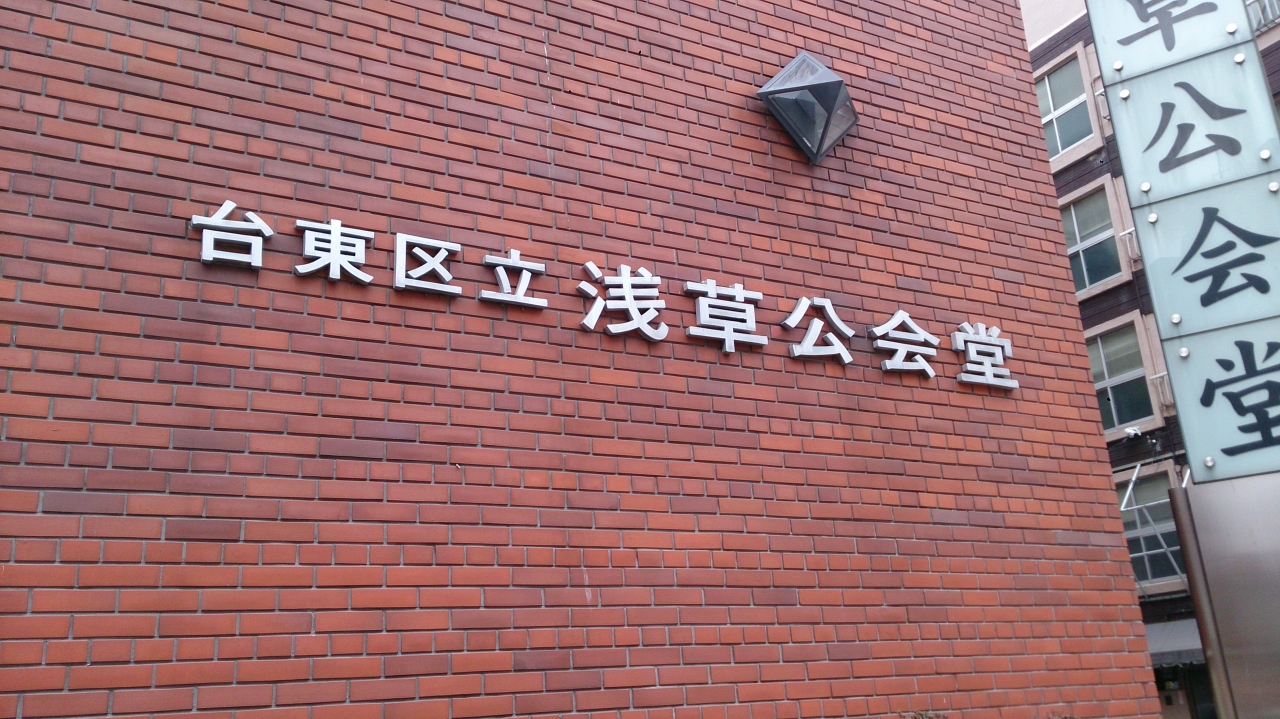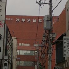 仲見世側からは茶色のタイル張りの外壁の建物の裏側が見えてしっかりと建物名表示もありますが、正面のオレンジ通り側は催し物案内などがありますが、基本的には普通の公共の公会堂で芸能関係の演目だけでなく講習会など地域行事にも利用されているところが庶民的で下町浅草らしくて良いと思います。