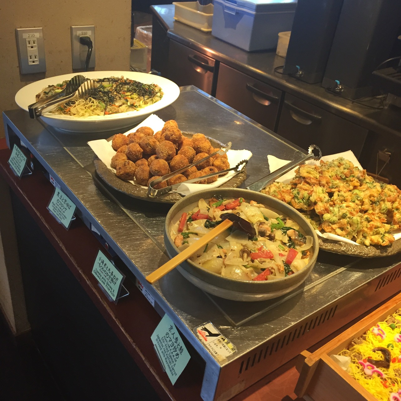 おばんざいバイキングを利用しました。料理の種類は多くありません。カレーと九条ねぎの味噌汁がおいしかったです。私は食べていませんが、八つ橋屋さんだけあって八つ橋も食べ放題でして。内容は悪くないのですがコスパが…1700円ではリピなしてす。