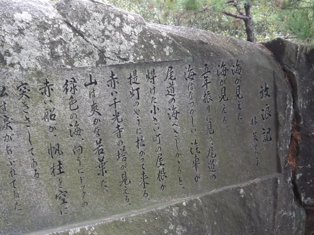 千光寺公園の文学のこみちは有名ですよね。千光寺の裏から展望台に向けて歩く道が文学のこみちです。千光寺から散策したので登りばっかりでしたが、自然の巨石に尾道とゆかりのある有名な人物の石碑を見ながらだったので全く苦になりませんでした。知ってる名前がいっぱい。林芙美子・正岡子規・志賀直哉など教科書で覚えた名前が次から次へでてくるので、ちょっぴり、わくわく感がありました。文学のこみちは、良かったです。