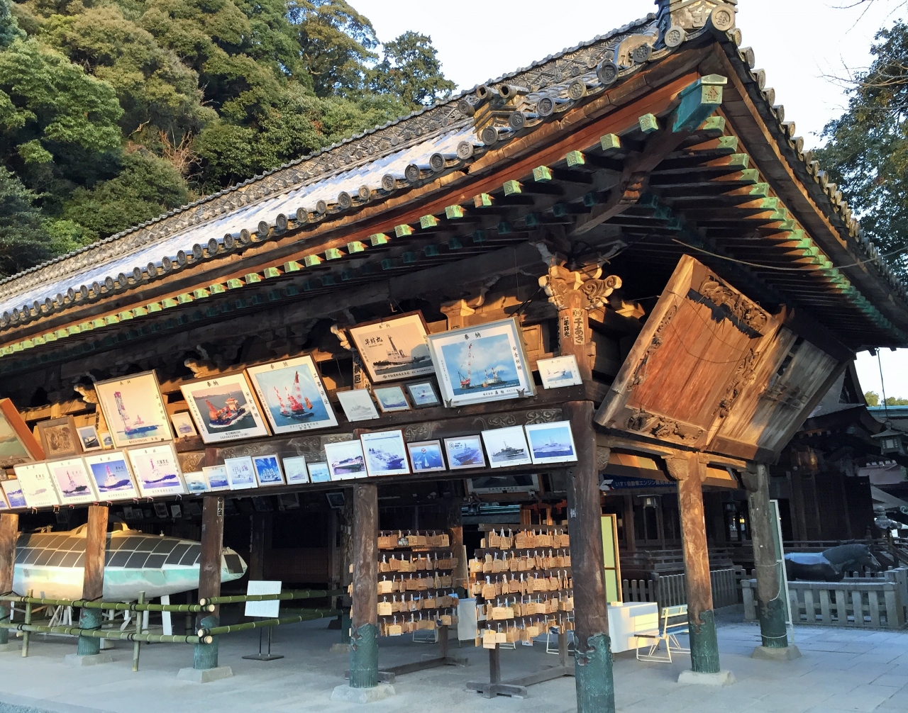 航海安全祈願の神様でもあるので、船の写真や絵馬も多くみられます。