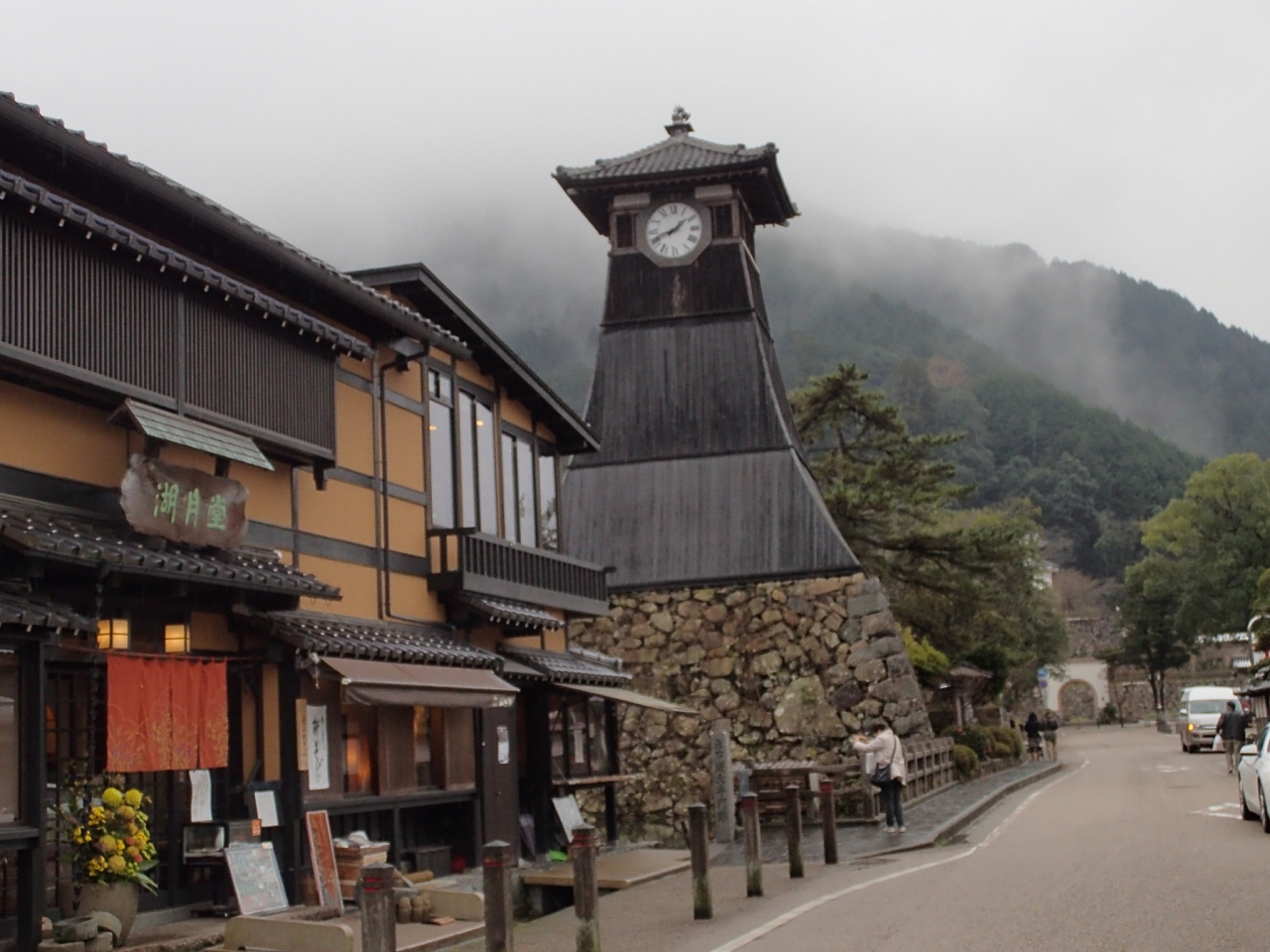 時計という現代の物が城下町の雰囲気に自然と馴染んでいます。
