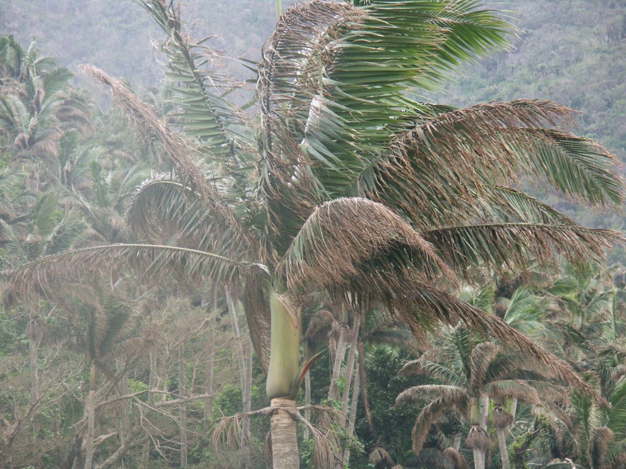 貴重なヤエヤマヤシの群落とのことだが、怪物のようなオオコウモリが樹上で喧嘩をしている場面に遭遇し、そのインパクトが強烈だった。いつもこのような光景を目にすることができるのか、偶々運が良かったのかはわからない。歩道は、木道がかかけられ、歩きやすい。ヤシだけではなく、幹に直接実がなる木なども見られる。