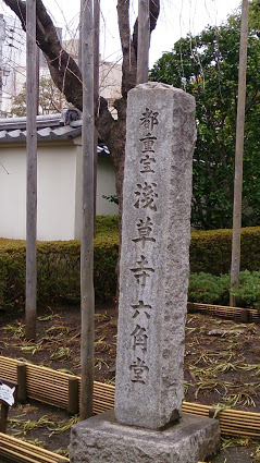 浅草寺の境内では一番奥に建っており、ここまで足を運んで参拝される方は少ないのか本堂や仲見世周辺の喧騒がうそのように静かです。大きなお堂ではありませんが木造で黒光りしたお堂は歴史と風格を感じさせる建物で当然ですが名前の通り六角形。さすがに東京都の有形文化財だと思います。