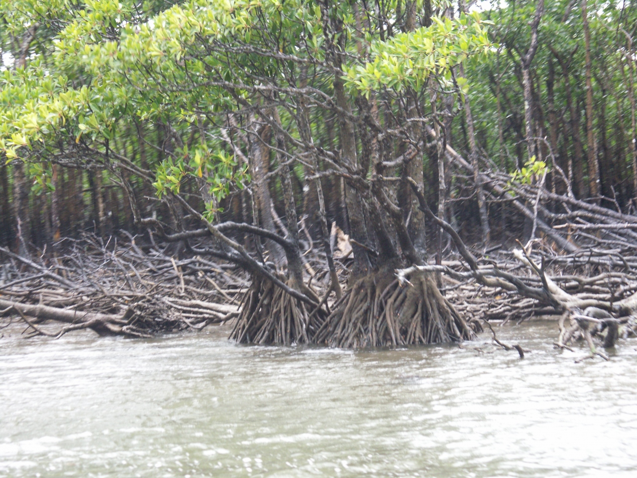 大原港から観光船は出航する。河口はとても広い。延々とマングローブの林が続く。最奥で上陸して、干潟のマングローブのジャングルの中の木道を辿り、根本が薄い板状になった大木を見る。日本の広さをつくづく感じさせる場所だ。