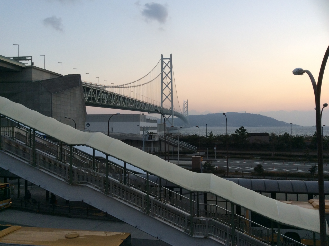 駅の前からは、淡路島や徳島方面に高速バスが発着していて、橋を渡ってゆくことが出来ます。