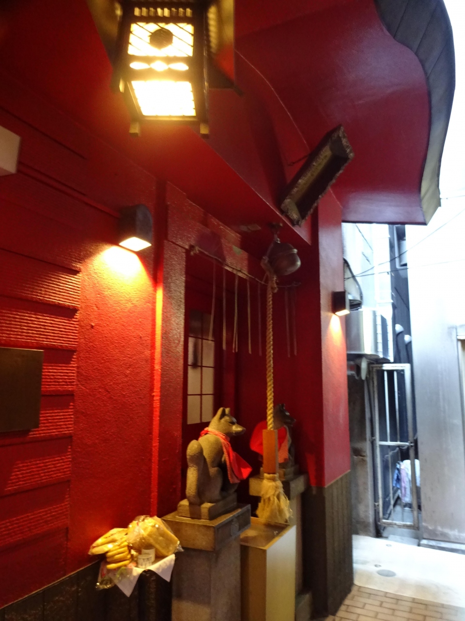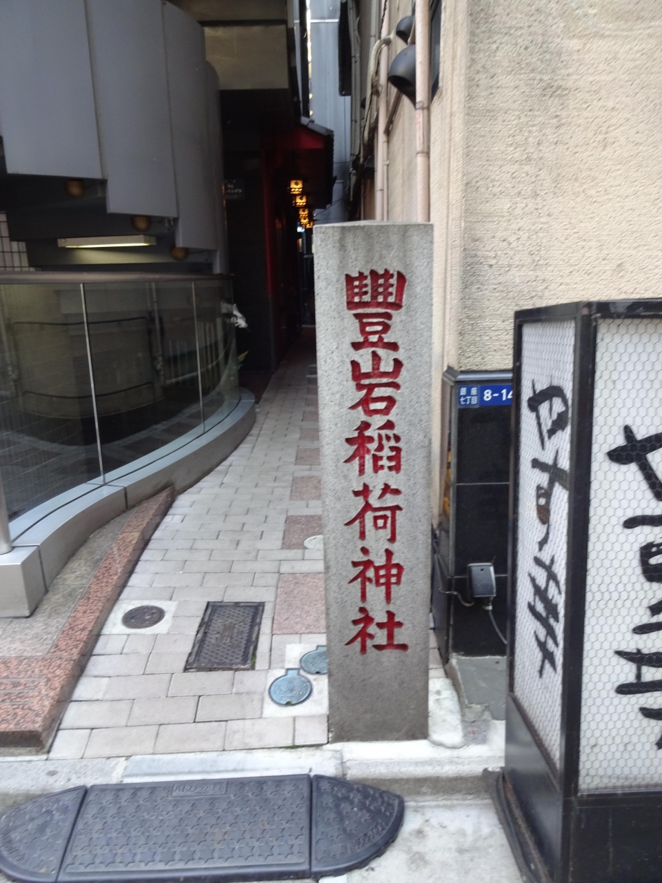 金春通りの「やす幸」東側の細いとおりの入口に「豊岩稻荷神社」の石柱があった。