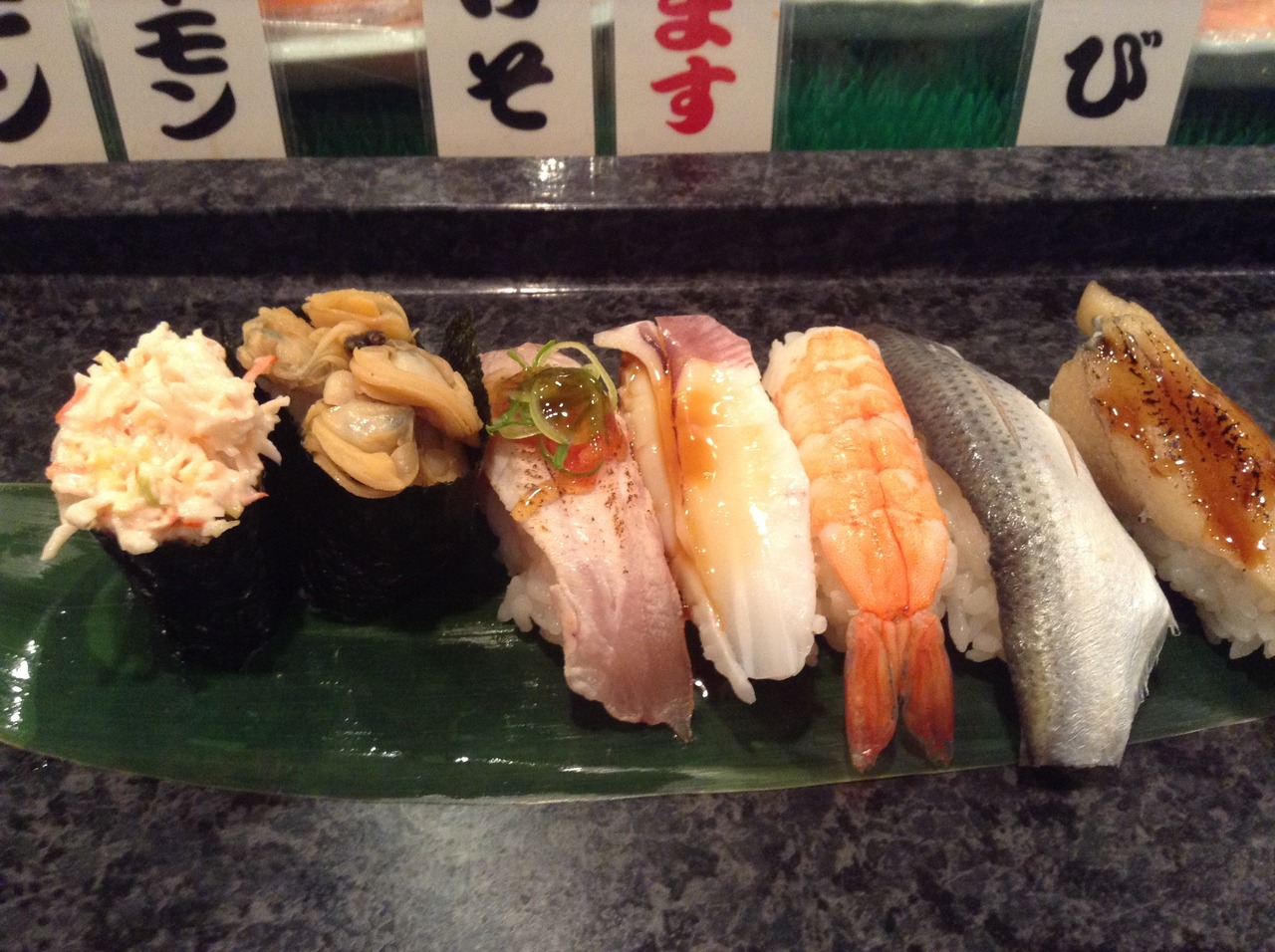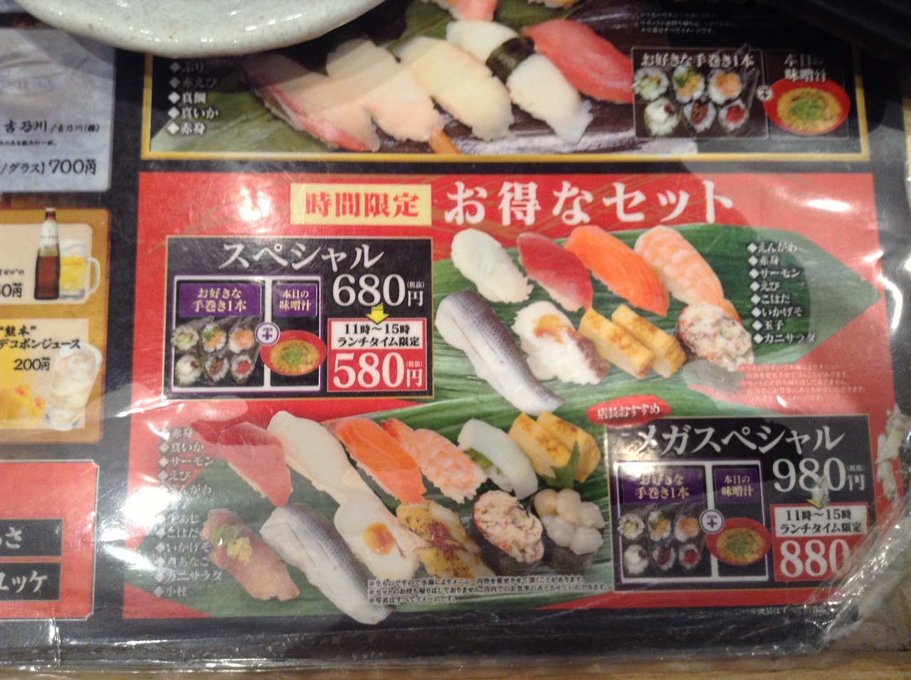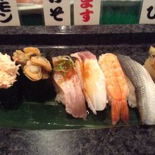 立ち食いですが、回転寿司ではありません。ランチで利用し、950円の握りセットを注文。