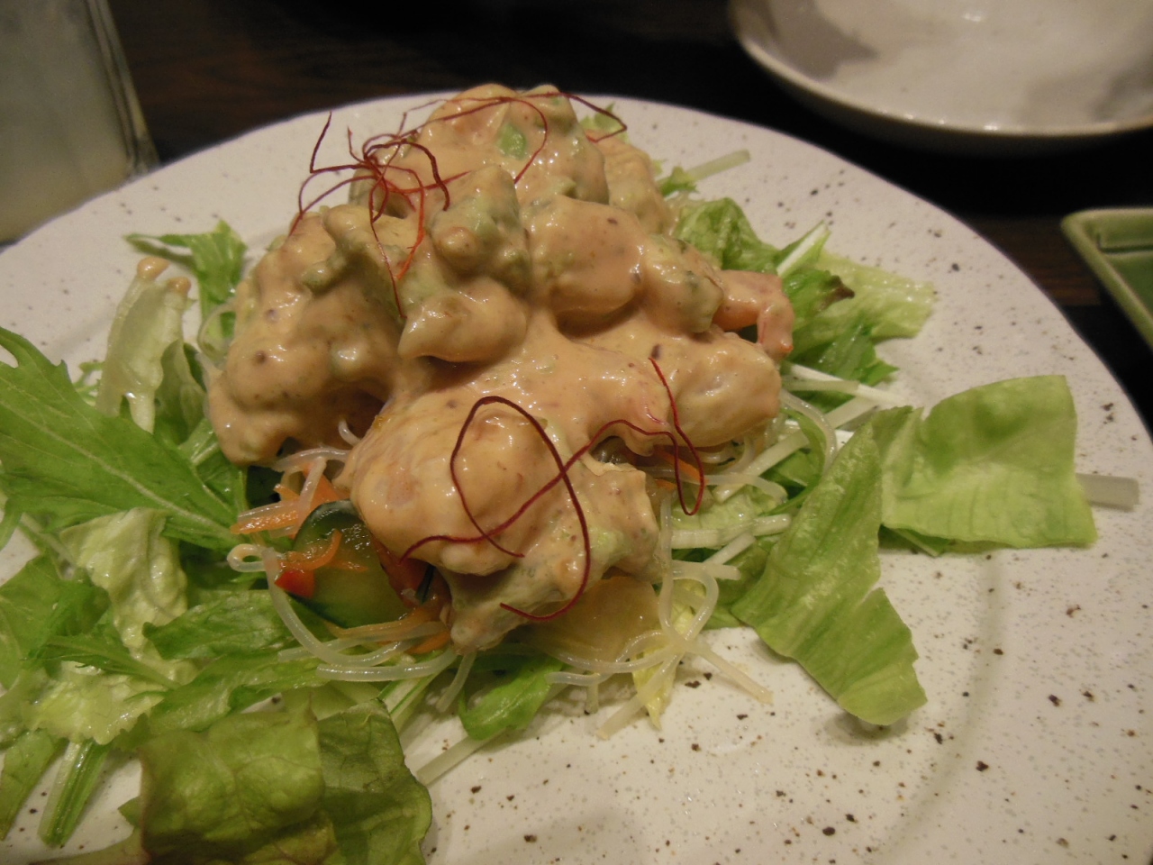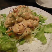 エビとアボカドのチリマヨ→エビプリ、エスニックな味付け。