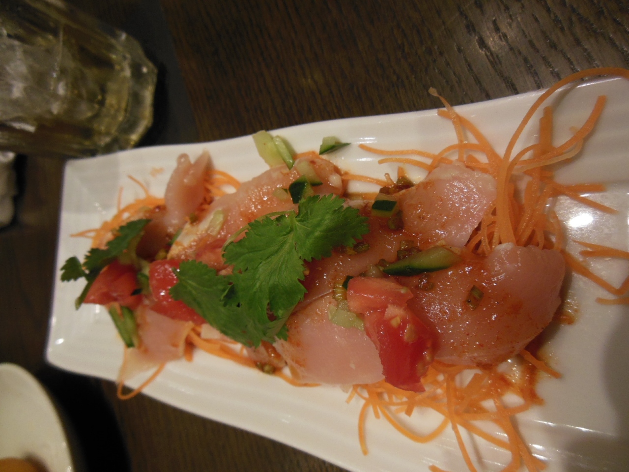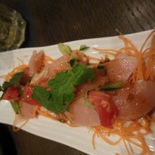 鶏たたきのカルパッチョ→ナンプラー系、似て異なる味。