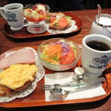 人気のモーニングサービスは野菜サラダとフルーツの2種類のセットがあり、どちらも800円でした。