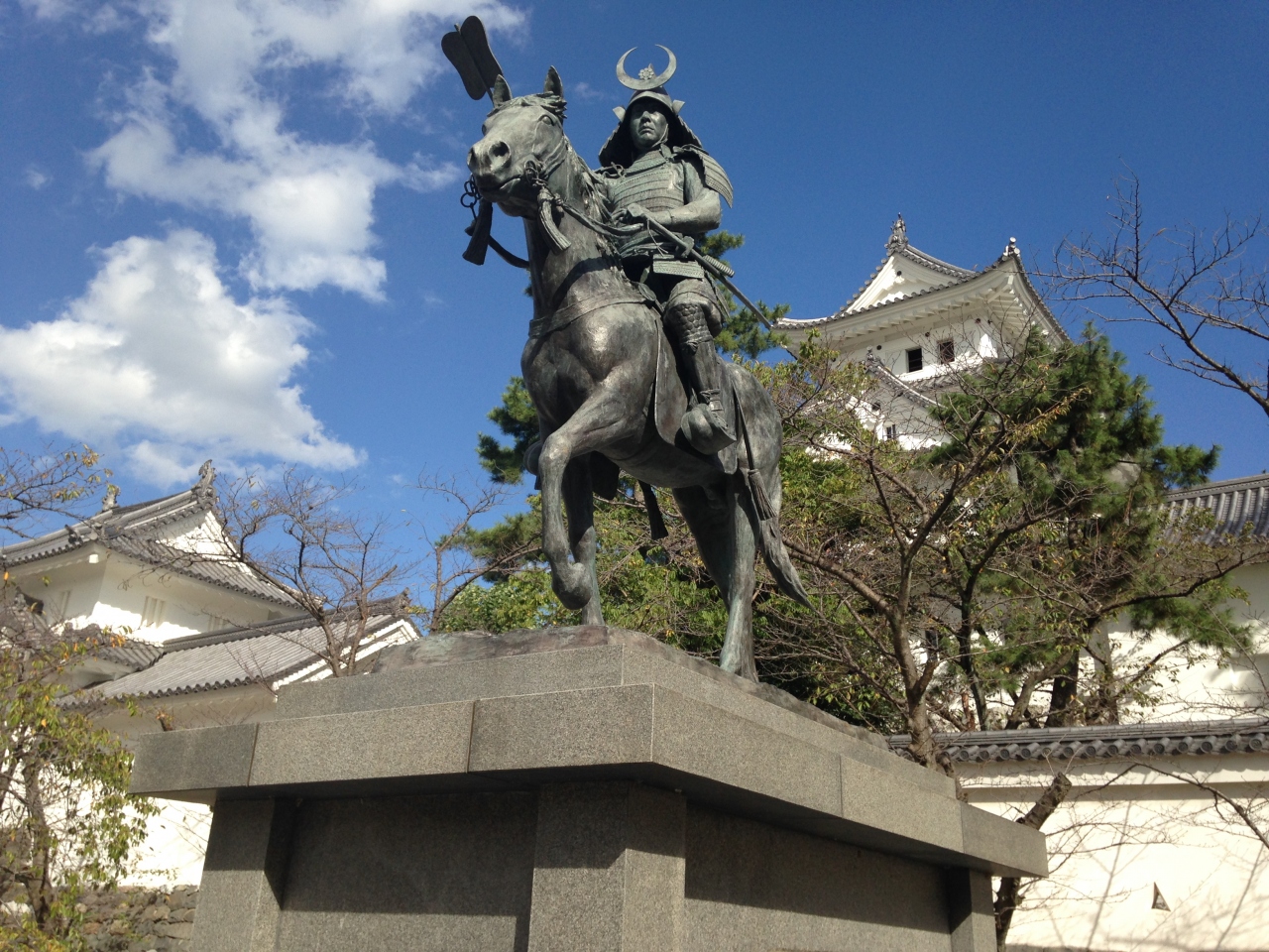 大垣城がある大垣公園内にある立派な騎馬像で、