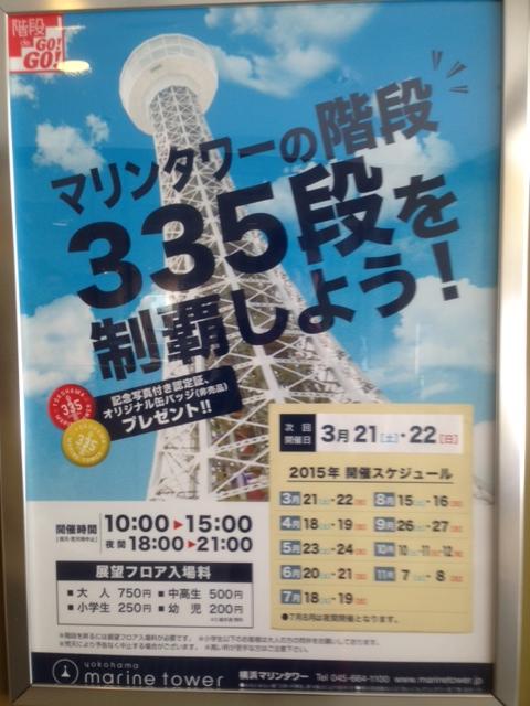 マリンタワーは、さまざまなイベントが企画されます。ダイヤモンド富士を見るイベント、女子大のミニコンサートを鑑賞するイベント・・・そして、335段の階段を足で登るイベントも企画されています。折々にいろいろ楽しめるタワーなのです。
