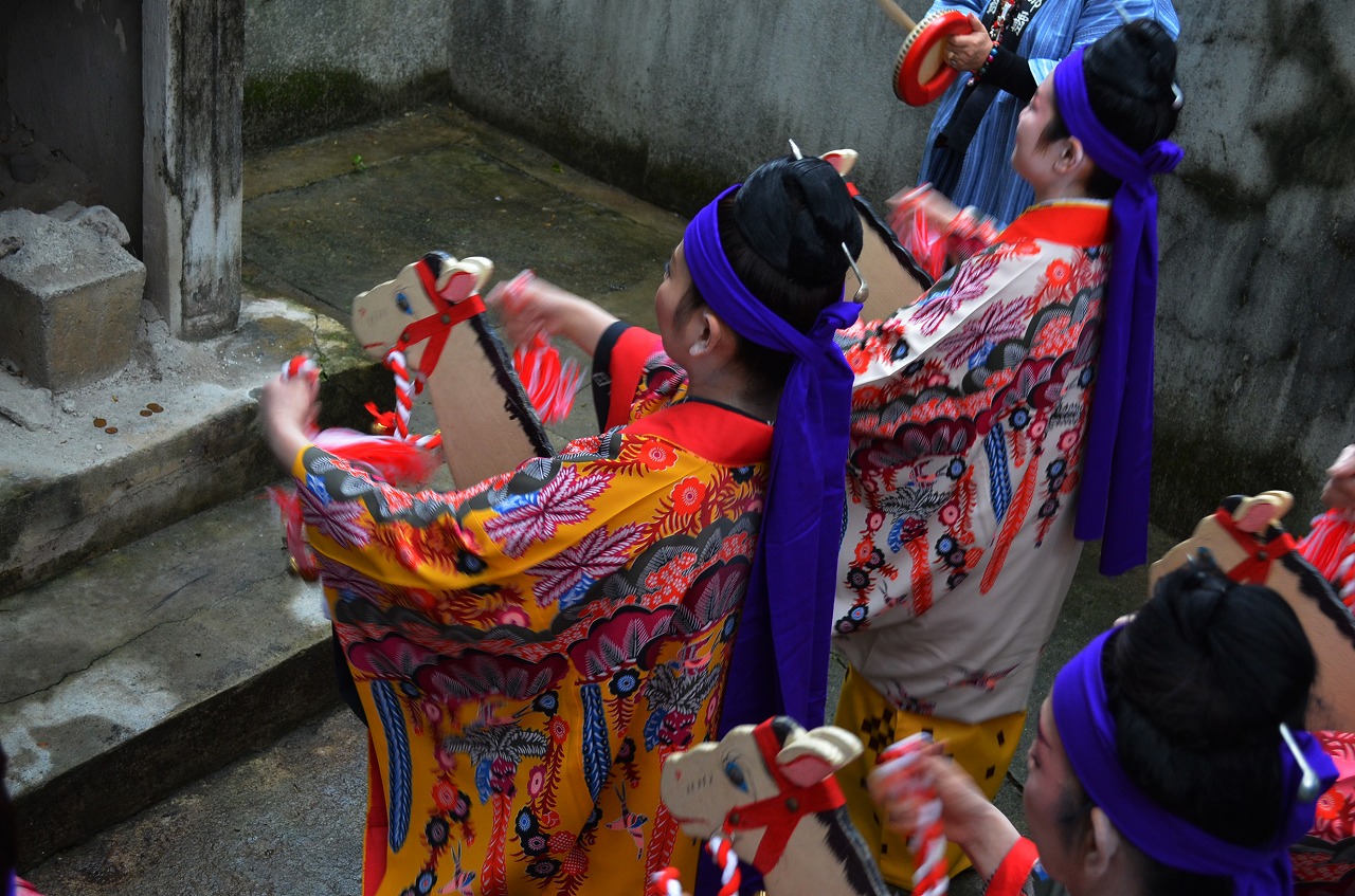 旧正月の二十日は、あの世の正月と言われていて2015年は3月10日。ただし平日のため、今年は15日(日曜日)に開催されます。ジュリ馬の儀式は、かつて遊郭だったエリアを歩き亡くなった遊女を弔い、奉納舞踊を行う儀式です。現在、ジュリ馬行列の行列はしませんが現在、琉球舞踊をされる方たちと保存会によって毎年、実施されています。だいたい午後から集落を練り歩き、14時より奉納舞踊の予定。不思議なユイユイのメロディに合わせて馬の書き割りを持った衣装をつけた舞踊家たちが踊ります。観光向けではない地域の伝統行事の一環なため、大々的に観光誘致はしてませんが、貴重な儀式をもし見る機会があればぜひ見て欲しい沖縄の文化です。場所は、福州園から徒歩15分ほど。料亭那覇を目印に裏のかつて料亭松下があった場所で奉納舞踊が行われます。