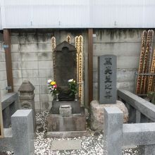 墓石は小さいうえ、黒ずんでいるので、文字を読み取ることはできなかったが、墓前は清掃され、花も供えられていた。