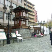 路面電車の道後温泉駅の駅前で、観光案内所の隣にある。本館までも徒歩数分。毎時カラクリが動くので、目にする機会も多い。道後温泉観光の起点となる場所なので、観光客の数はとても多い。隣には足湯もあるので、待ち時間をつぶすこともできる。