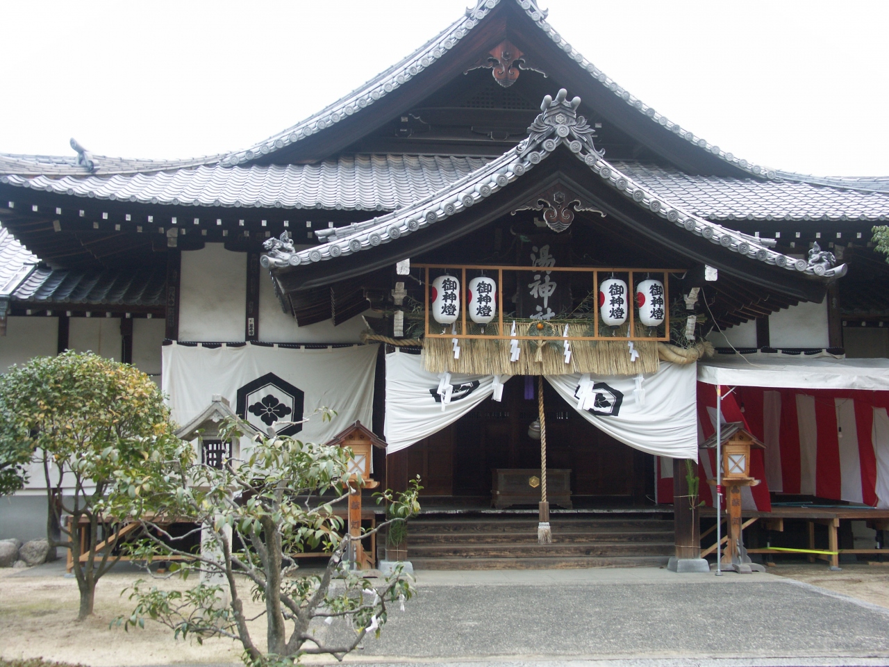 道後温泉本館の南にある公営駐車場の高台にある、駐車場から直接神社に入ることができる。本館と逆の方向には、階段の立派な参道もある。建物は古くはない。道後温泉の宿泊者の散歩コースには、高台の上り下りがあるので適度な運動量もあり手頃だろう。