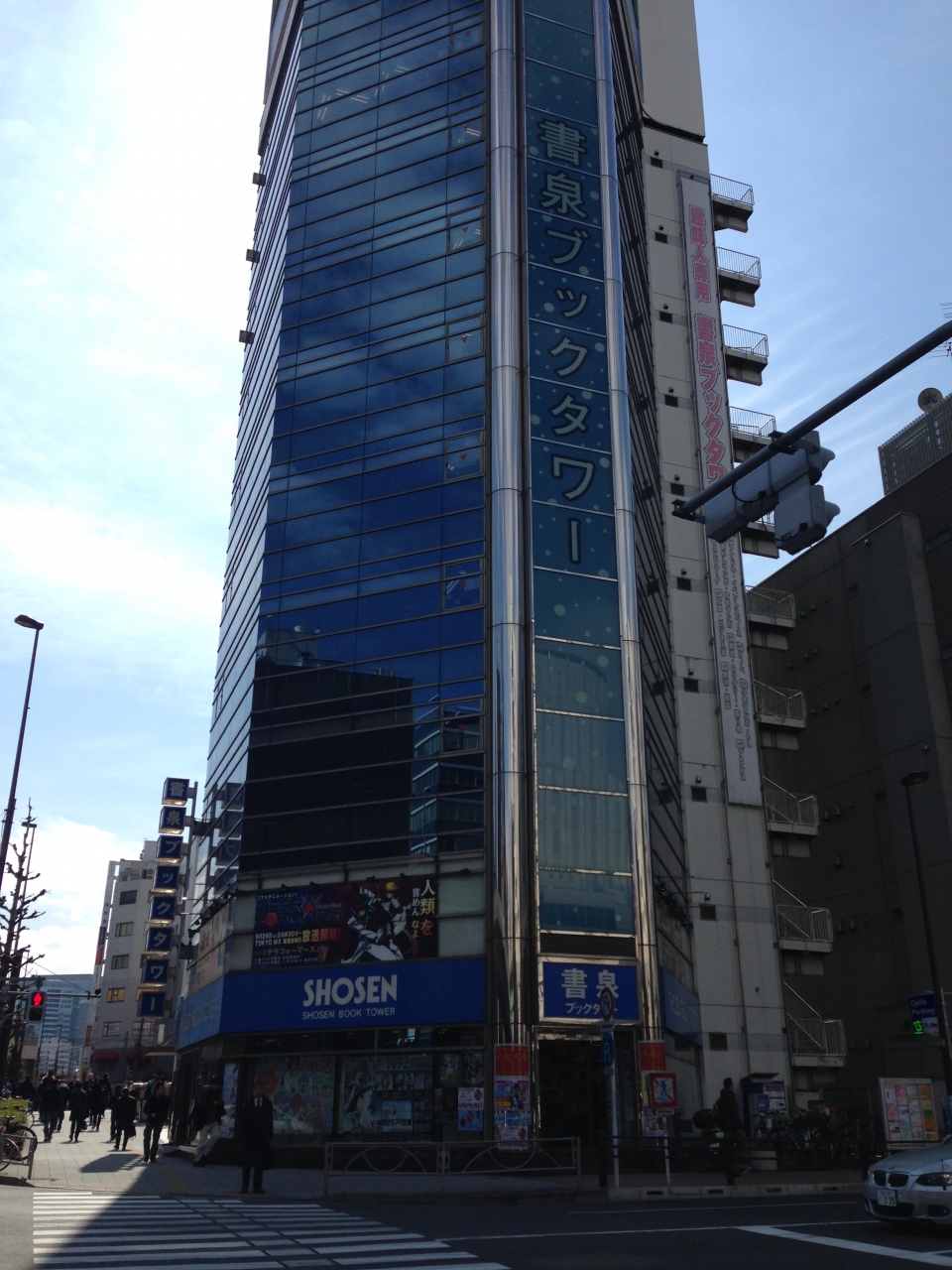 1階~9階までありエレベータ、エスカレータで昇り降りします。各フロアごとに一般雑誌、ビジネス、コンピュータ関連、コミック等の売り場があります。