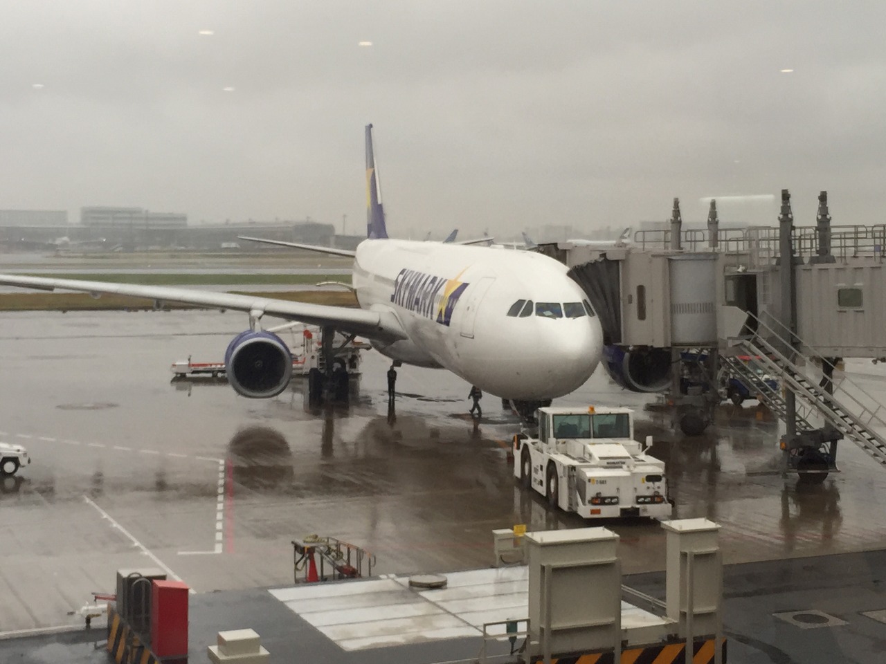ANA派の自分はなじみ薄い第一ターミナル。この日もスカイマークに搭乗。ちょっとターミナルビルのスケールも小さいけど、国際線開業後はテナントも増えて活気付いてきた気が。特に、デッキから国際線が眺められるのは魅力です