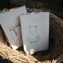 日暮里駅から徒歩10分くらい、朝倉彫塑館の近くにありました。手作りブックカバーのお店です。オリジナリティのあるイラストが特徴的で、温もり感のある商品でした。どれも1点ものだそう。ジュンク堂池袋本店でも取り扱っているそうです。