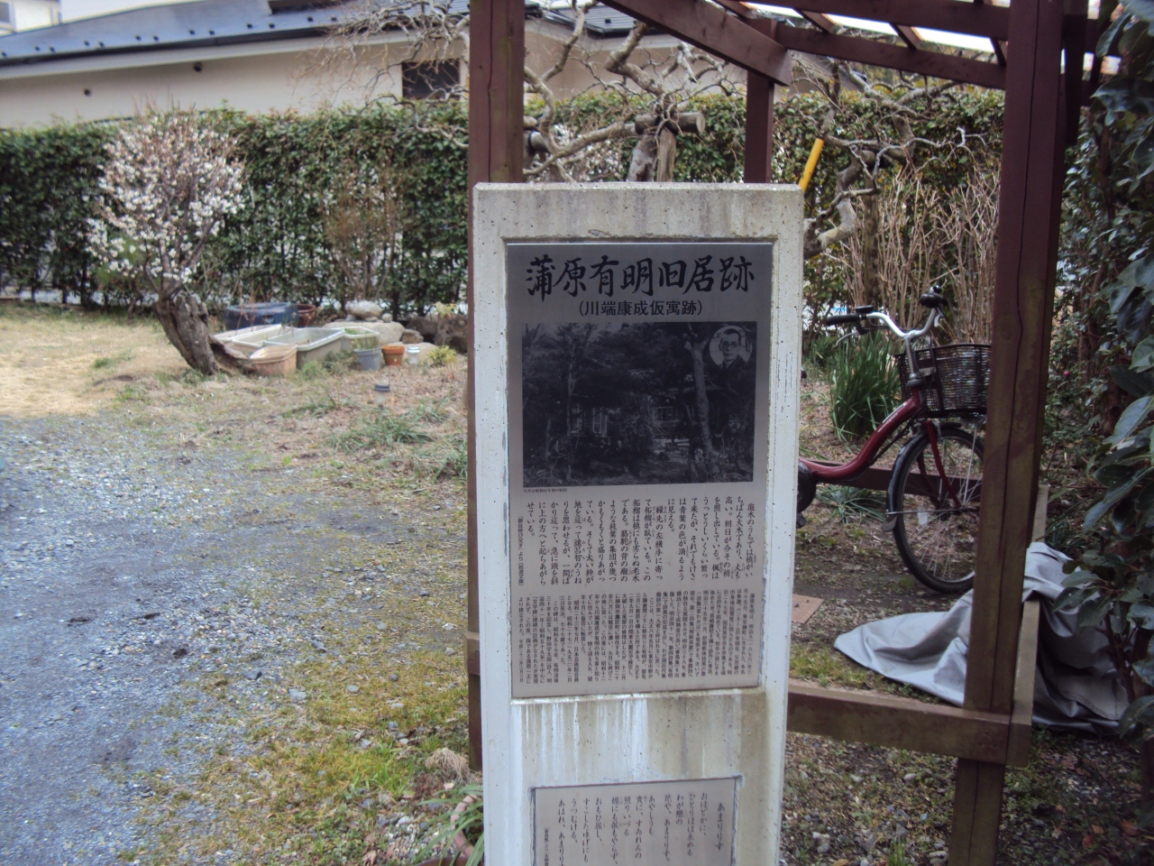 詩人・蒲原有明の旧居です。この詩人の作品は読んだことがありませんが、長谷の川端康成の自宅跡を見てから行ってみました。鎌倉宮の左側の道を北上し、道が少し狭くなる所にあります。写真のガイドがあるのみで、家も建て替えられているようです。