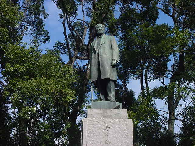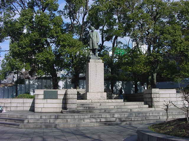 高速道路に隠れているものの、日本橋川にはさまざまな歴史的な史蹟があります。日本銀行の本店を見学したあと、常盤橋を渡ったところにあるのが渋沢栄一の銅像。大きな像で、日本ビルから東京駅日本橋口まで睥睨しています。周辺は緑も多く、トイレもここにあります。