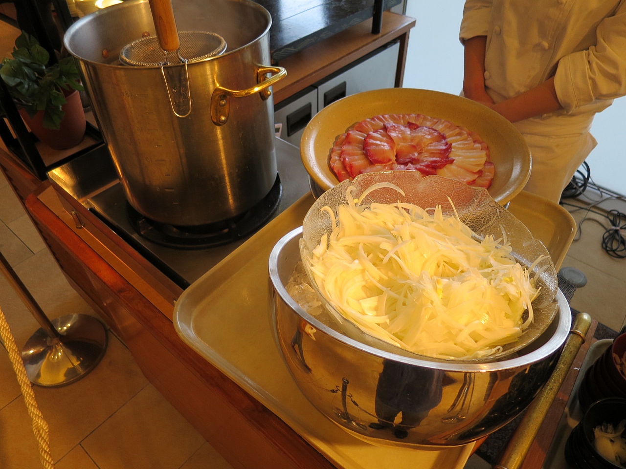 久しぶりに「ウェスティンホテル淡路」に滞在し、「コッコラーレ」の土・日・祝日・祝日前用ディナービュッフェを利用しました。料金は3650円で、平日に比べると300円プラスですが、もちろんSPGAMEX会員は15%割引になります。二部制の食事時間のうち、17:30からの第一部に予約を入れて訪れました。ただ…さすが対岸の神戸・大阪からの気軽な旅行先、それも週末とあって、すぐに店内はお客さんでいっぱいになりました。さらにカジュアル過ぎる服装をしたお客さんが多かったことと、週末だったせいもあって子ども連れのお客さんも多く、ちょっと落ち着かない感じになってしまいました。チェックイン時にいただいたウェルカムドリンク券で利用できる飲み物の種類をスタッフが知らなかったり、料理の補充が間に合わないことがあったことも残念でした。ただ外観と同様に店内も綺麗ですし、淡路島産食材が用いられた料理は相変わらず美味しく、3650円とは思えない内容であることは間違いありません。次回は是非とも平日に訪れたいと改めて思いました。