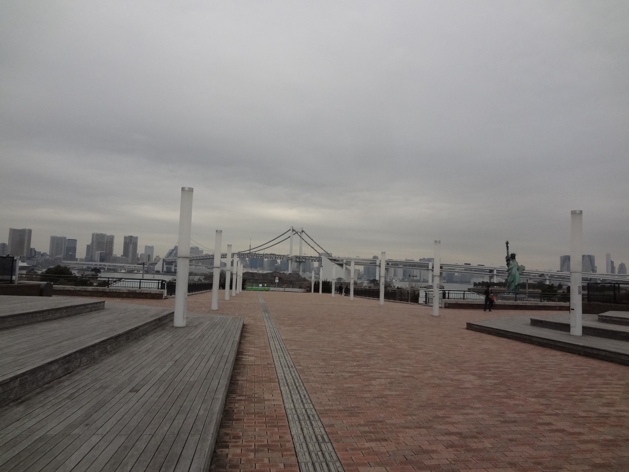 お台場エリア、アクアシティやデックス東京ビーチの前、海沿いに遊歩道が設けられています。正直なところ「磯のプロムナード」というものがどこからどこまでを指すのかよくわかりません。しかしながら、海あり、建物あり、自由の女神ありと、様々な光景が楽しめる散歩道であることに間違いはありません。