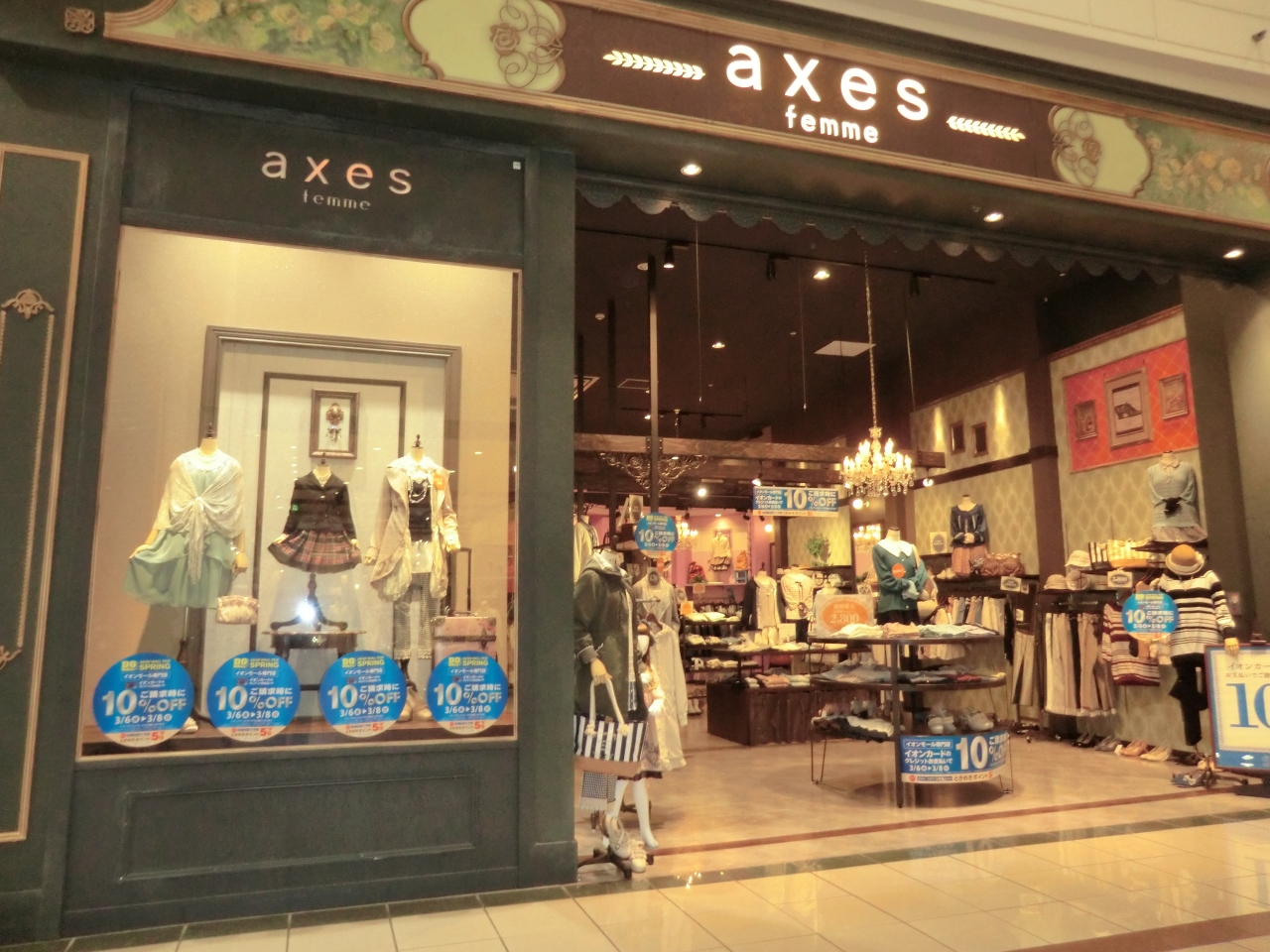 イオンモール鶴見緑地店の一階です。フェミニンな若い女の子向けの洋服屋さんです。乙女チックではありますが、リボンやフリルもさりげない感じで使っているので、とても着やすいと思います。お値段も凝っているわりには、リーズナブルですね。