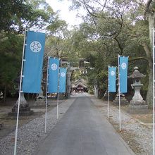 駐車場が本殿近くにあるのですが、その南方に細長く参道が続いていて、訪問したのが冬だったので殺風景でしたが、花の季節にはすばらしい散歩道になりそうでした。