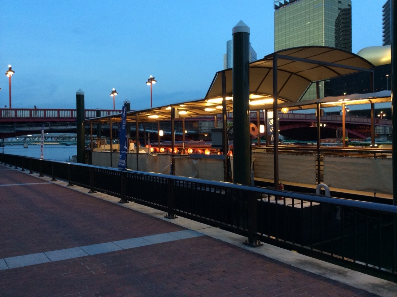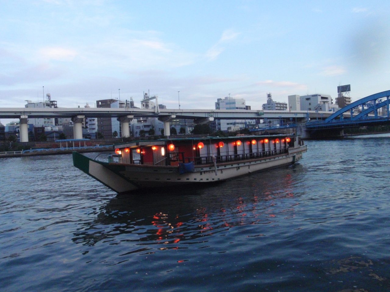 吾妻橋から屋形船に乗り込む。夕方でスカイツリーもしっかり見える。レインボーブリッジまで下って、舟付き場に戻ってくる頃にはもう夜景を楽しむ時間になる。飲み放題で、さらに天ぷらは揚げたてが食べ放題。景色とお酒を楽しむ晩だった。