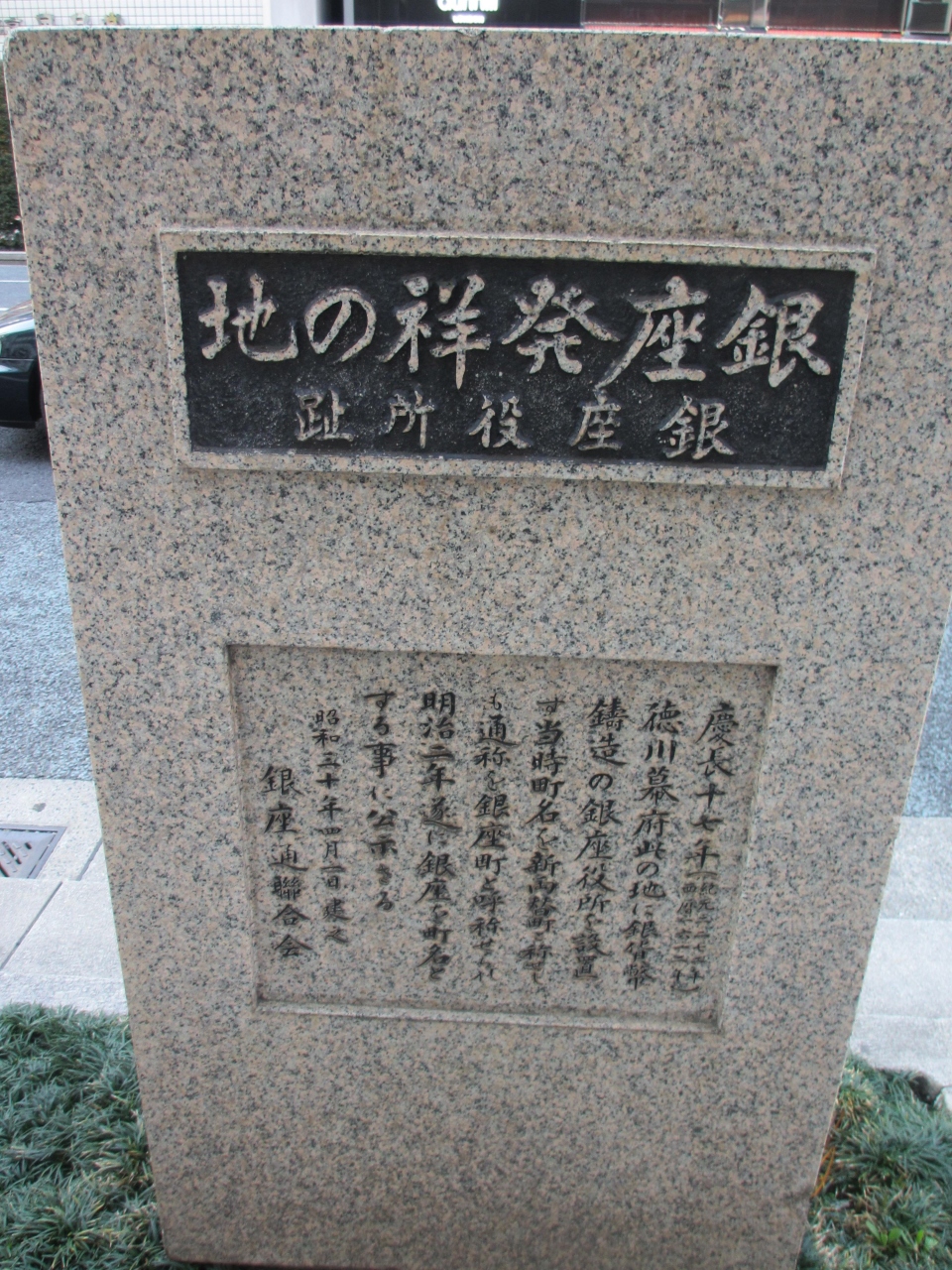 少なく見積もっても、今までに100回以上この碑の前を徒歩で通っていたはずですが、いまさらながら、初めてその存在を知りました。中央通りのティファニー側でティファニーに背を向けて、ダンヒルの方向を見るとこちらの碑を見つけることができました。銀座というイメージからすると割と小さな碑だと思いました。