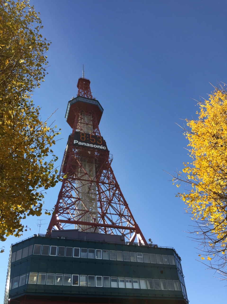 出張早起き観光その?。晴れていたので散歩に出かけてまず訪れたのがテレビ塔。前にのぼったことがあるのでこの日は真下から。イチョウの黄色、タワーの赤、青空のコントラストが綺麗でした。全国の歴史あるテレビ塔群、残っていてほしいものです