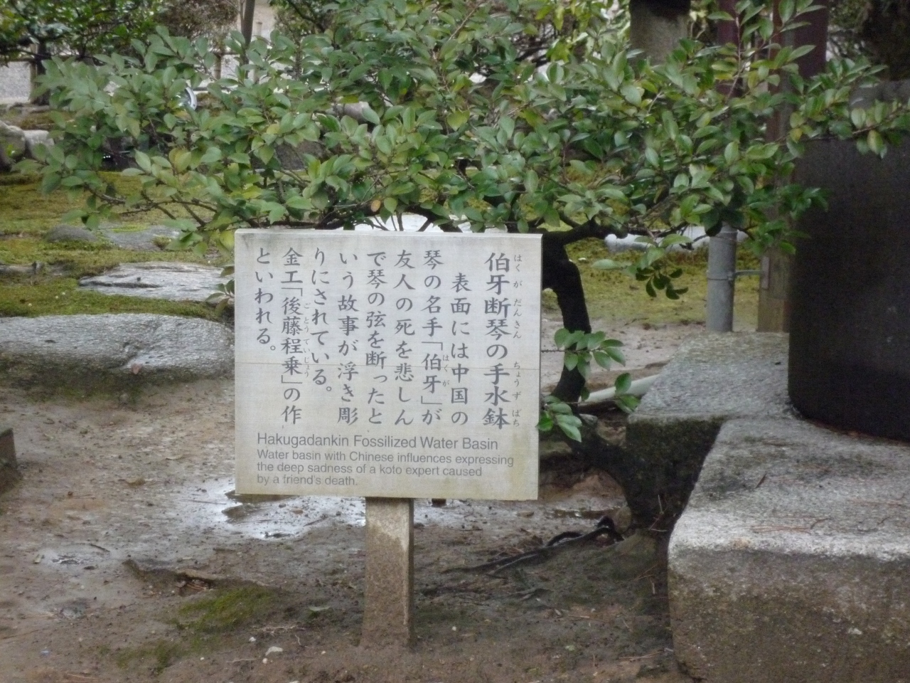 この手水鉢は、自らの琴の音を最も理解した友人の死を嘆き、