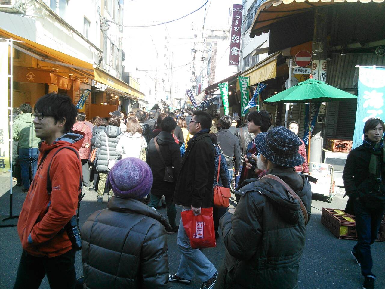 日曜午後に訪れたので観光客が少しいるぐらいでテレビでみるほどの活気はないです。場外なので業者のかたははとんどいません。築地を本当に味わいたいなら場内がいいとおもいますが、一般のひとが入れるかどうか?です。