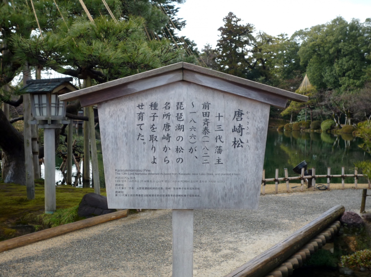 実際、私が撮った写真を見ると、唐崎松の説明板を撮影するために、