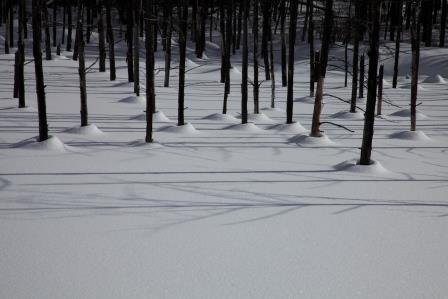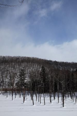 冬の美瑛の雪景色を訪ねて、天気が良かったので最近有名になった「青い池」に立ち寄ってみた。このシーズンは池全体に雪が積もっていて、雪の野原を眺める感じだった。夜にはカラーでライトアップされるそうなので、その時はきれいと思うが昼間は何もない雪景色でした。