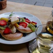 パンケーキがおいしそうだったので頼みましたが、メニューやネットで見かけるパンケーキは有料のフルーツをトッピングした場合の写真なのでご注意を。
