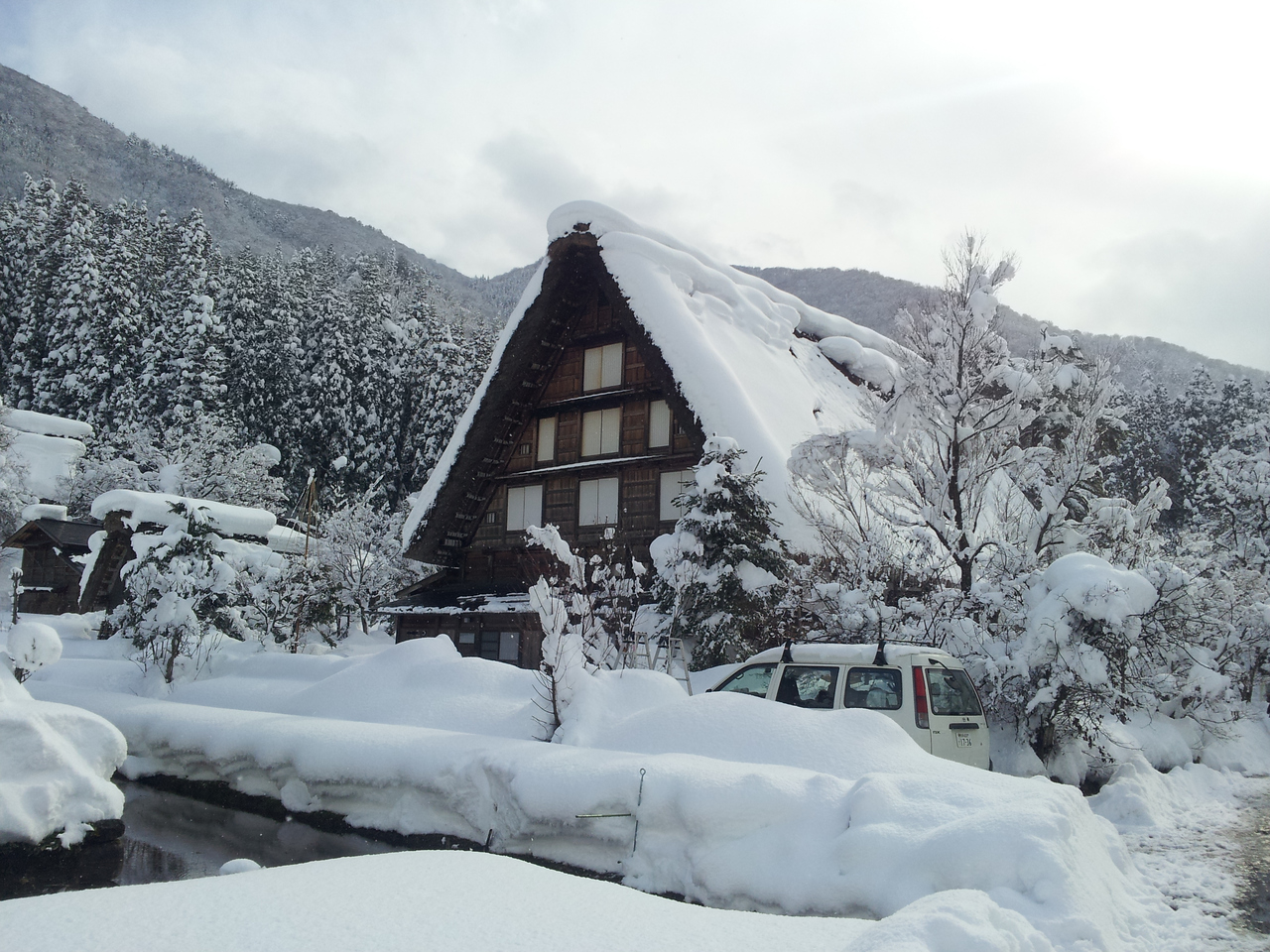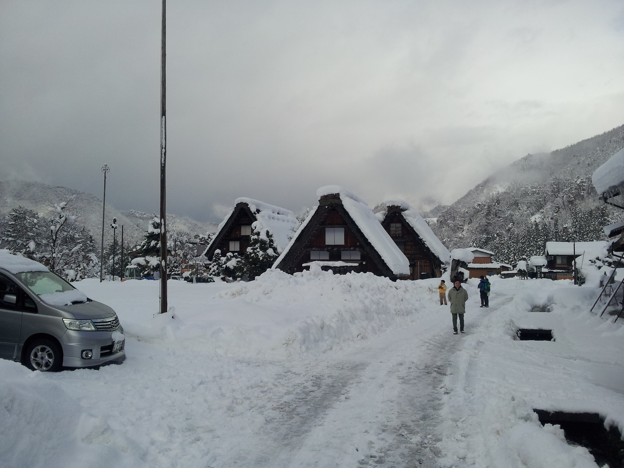 高山駅からレンタカーで高速道路をつかって雪道を向かいました。
