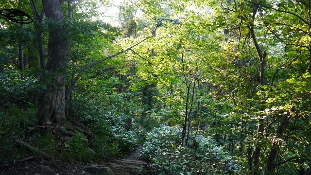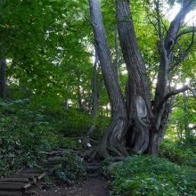 地下鉄大通駅から4つ目の駅円山公園駅が最寄り駅。札幌中心部から少し離れたエリアの背後に山々がそびえそのうちのひとつ円山に生えている原始林。登山道を通るとうっそうとした雰囲気となり、先ほどまでビル群の中にいたとは思えないような光景。標高225mの山なのであまり労せずに原始林の風景を楽しめる。