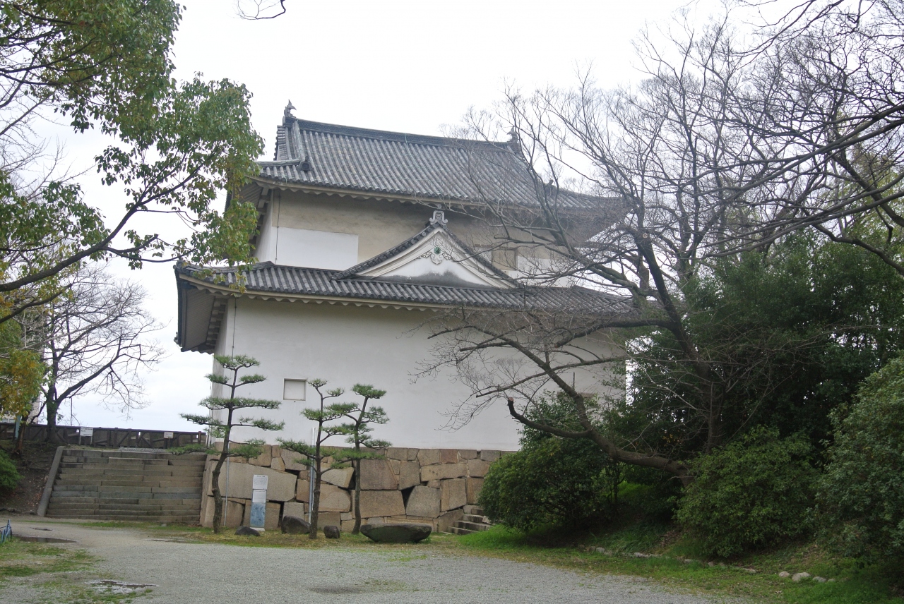 重要文化財に指定されている建造物ですが、普段は一般公開されていないので中に入ることはできず、近くまで行って見学している人はあまりいませんでした。櫓は外側から堀や石垣といっしょに見たほうがきれいなのかもしれませんね。造形的にも城内から見ると窓や挟間もなく、つるんとした感じです。